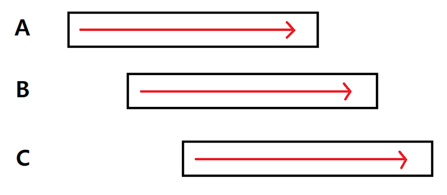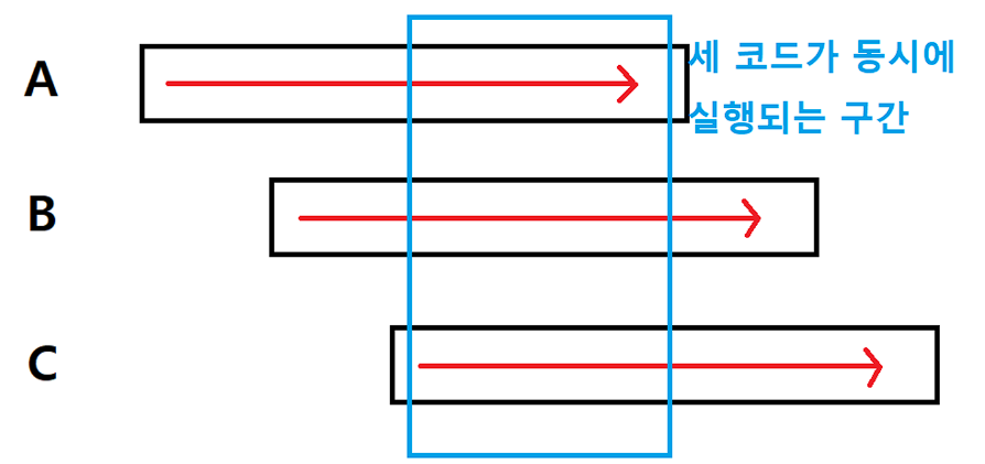 A가 시작되고 이후에 B가 시작되는데 이 때, A와 B가 공통적으로 진행되는 순간이 존재한다.
