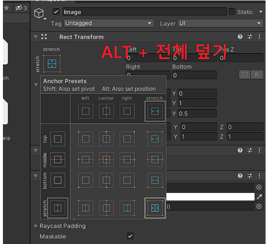 이제 이 이미지의 투명도(알파값)을 조절하여 Fade 연출을 만들 수 있다.