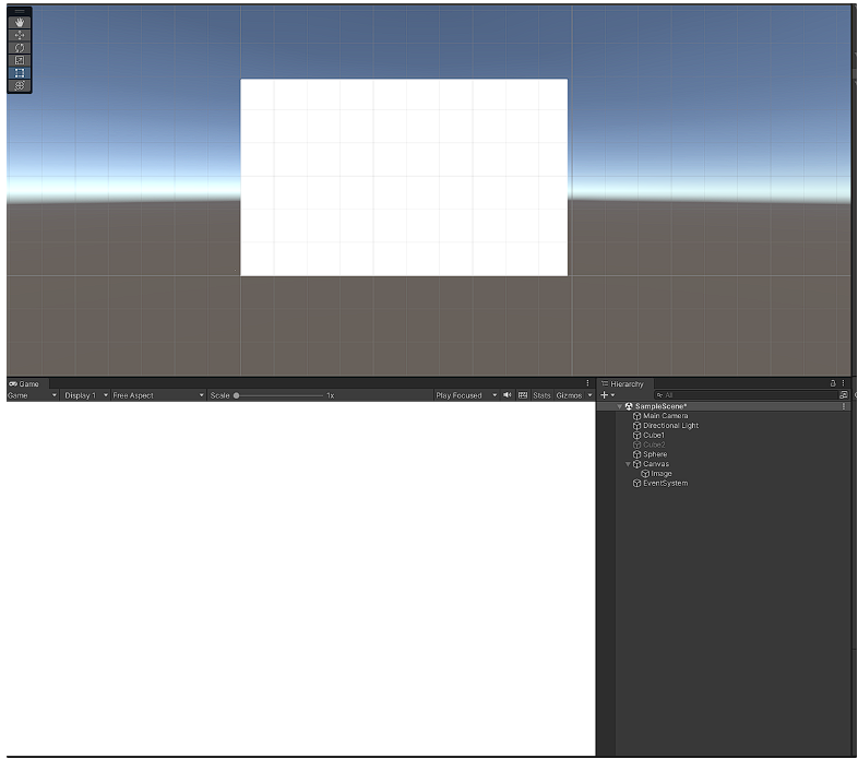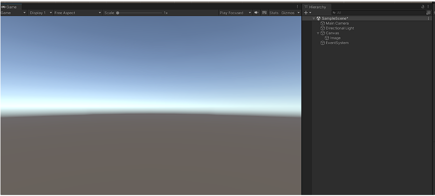 실제 플레이되는 Game 창을 통해 확인할 수 있듯이, 화면 전체가 생성한 이미지로 덮인 모습이다.