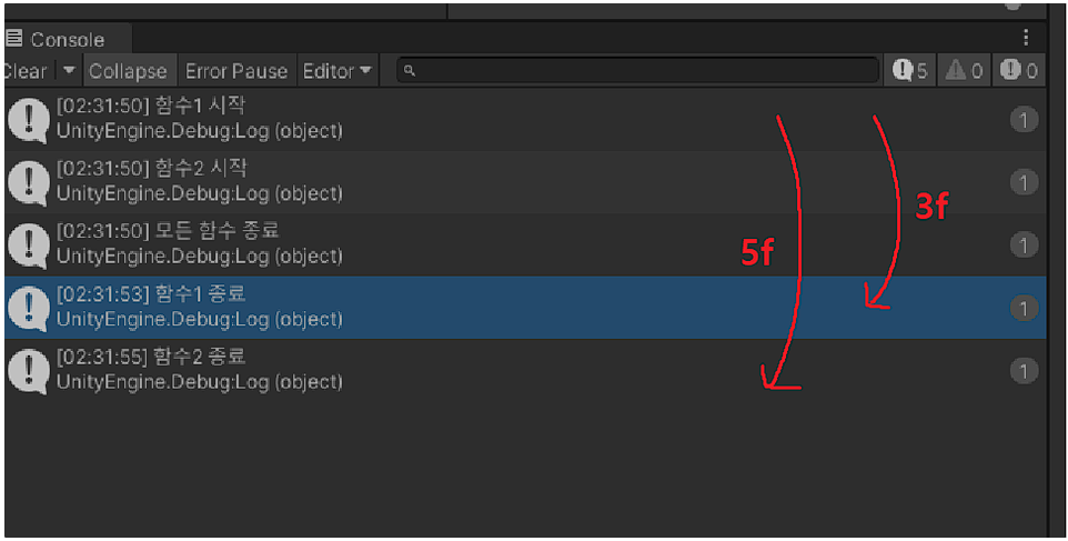 Debug.Log("함수2 종료");