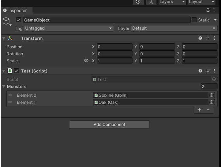 위 코드로 만든 Goblin 스크립트를 컴포넌트로 할당