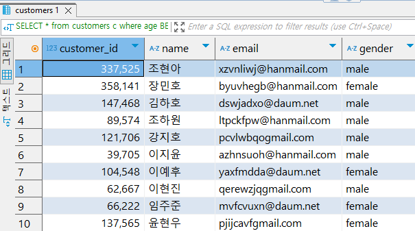 customers 라는 테이블.