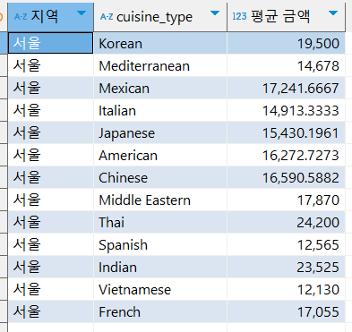 GROUP by 1,2 //GROUP by SUBSTR(addr, 1, 2), cuisine_type 와 같은 의미