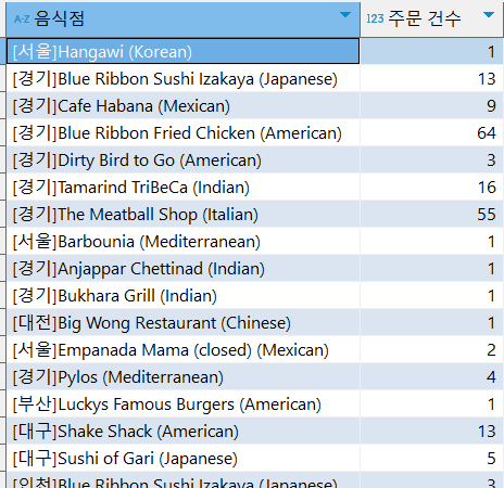 restaurant_name, ' (', cuisine_type, ')') '음식점',