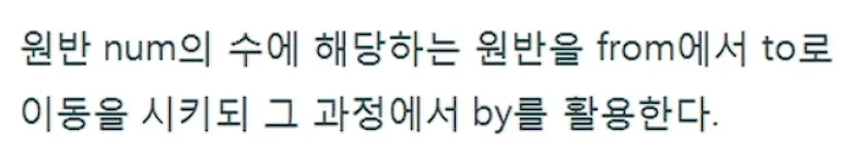 A, B, C의 기둥이 있는데 현재 있는 기둥이 from, 도달해야 하는 기둥이 to 가 된다.