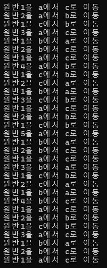 2번과 1번 원반을 옮기면, 또 1번을 C로 옮겨야 한다.