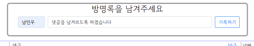 [이름, 내용] 을 입력해 기록하기 버튼을 누르면 본문에 내용이 담기고,