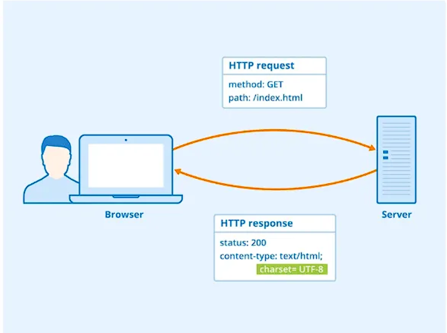 사진처럼 클라이언트(브라우저) 에서 서버로 요청(Request) 하면, 서버는 그에 맞는 답을 응답(Response) 하는 방식이다.