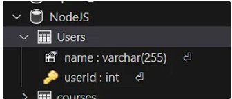 이렇게 Users 테이블에 두개의 컬럼이 나타난다. userId 를 보면 키 모양의 아이콘이 보이는데, 이것이 Primary Key 가 적용됨을 나타낸다.
