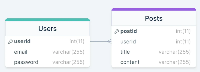 테이블 간의 관계로는 Post 테이블의 userId 가 Users 테이블의 userId 를 참조하고 있는 형식이다.
