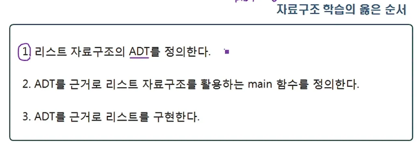 자료구조의 내부 구현을 모르고도 해당 자료구조의 활용이 가능하도록 ADT를 설계하는 것이 옳다.