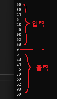 입력된 숫자들은 전위 순회가 완료된 순서로 값들이 주어진다고 하였다.